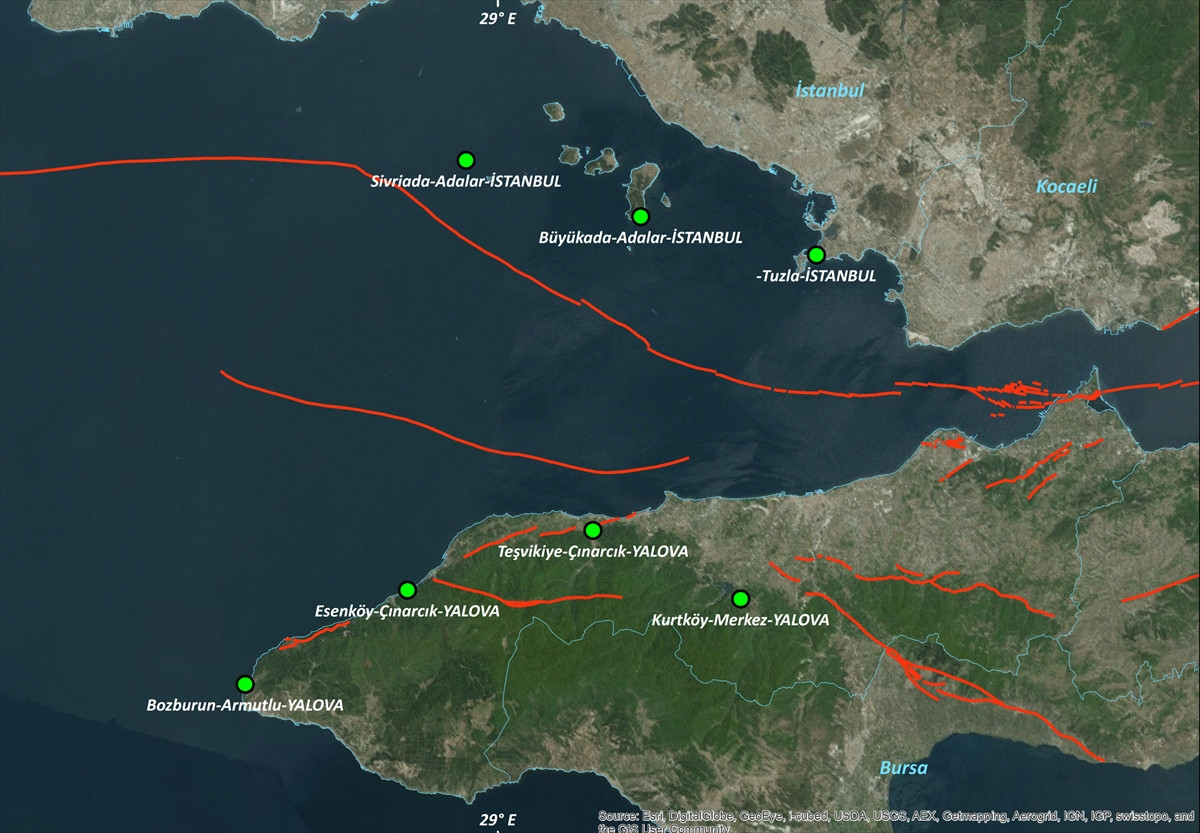 Ağ dahilinde, Tuzla, Büyükada ve Sivirada’da birer olmak üzere İstanbul’da 3; Kurtköy, Teşvikiye, Esenköy ve Bozburun’da birer olmak üzere Yalova’da 4 derin kuyu deprem gözlem istasyonu bulunuyor.