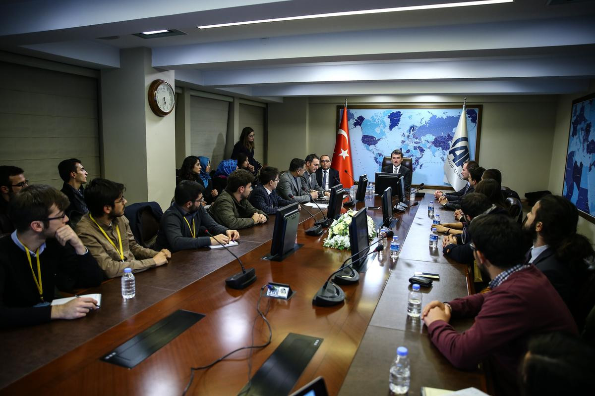AA Genel Müdür Yardımcısı Mustafa Özkaya, Başbakanlık Kamu Diplomasisi Koordinatörlüğünce yürütülen "Dış Politika Tanıtım Programı" kapsamında, 25 kişilik öğrenci grubuna AA'nın tarihi ve hedefleri konusunda bilgi verdi.