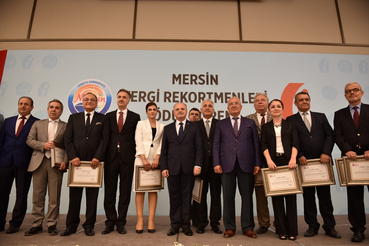 Konuşmaların ardından Coşkun, Mersin Valisi Özdemir Çakacak ve Büyükşehir Belediye Başkanı Burhanettin Kocamaz ile birlikte vergi rekortmeni kurumların temsilcilerine ve iş adamlarına teşekkür belgelerin takdim etti.