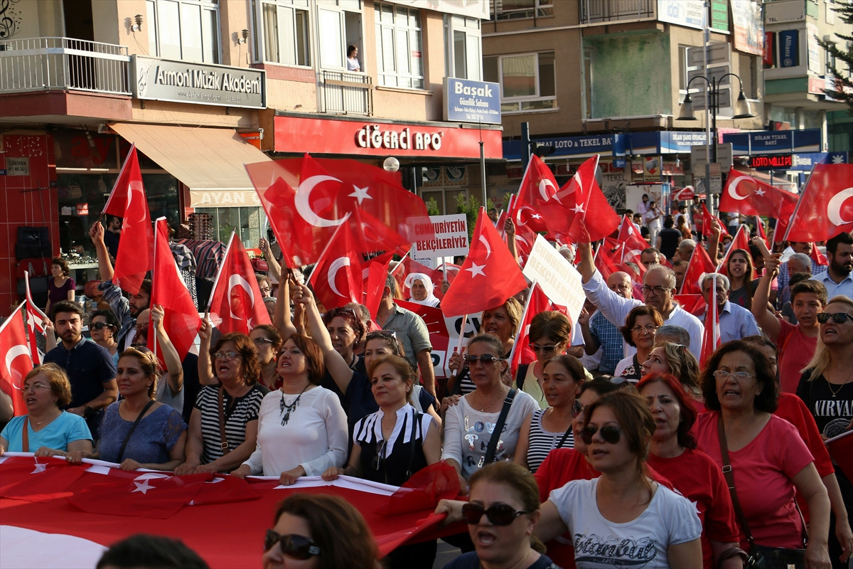 Bir alışveriş merkezi önünde toplanan vatandaşlar, ellerindeki Türk bayraklarıyla "Mersin uyuma şehidine sahip çık", "Susma haykır, teröre hayır" sloganları atarak, yürüşe geçti.