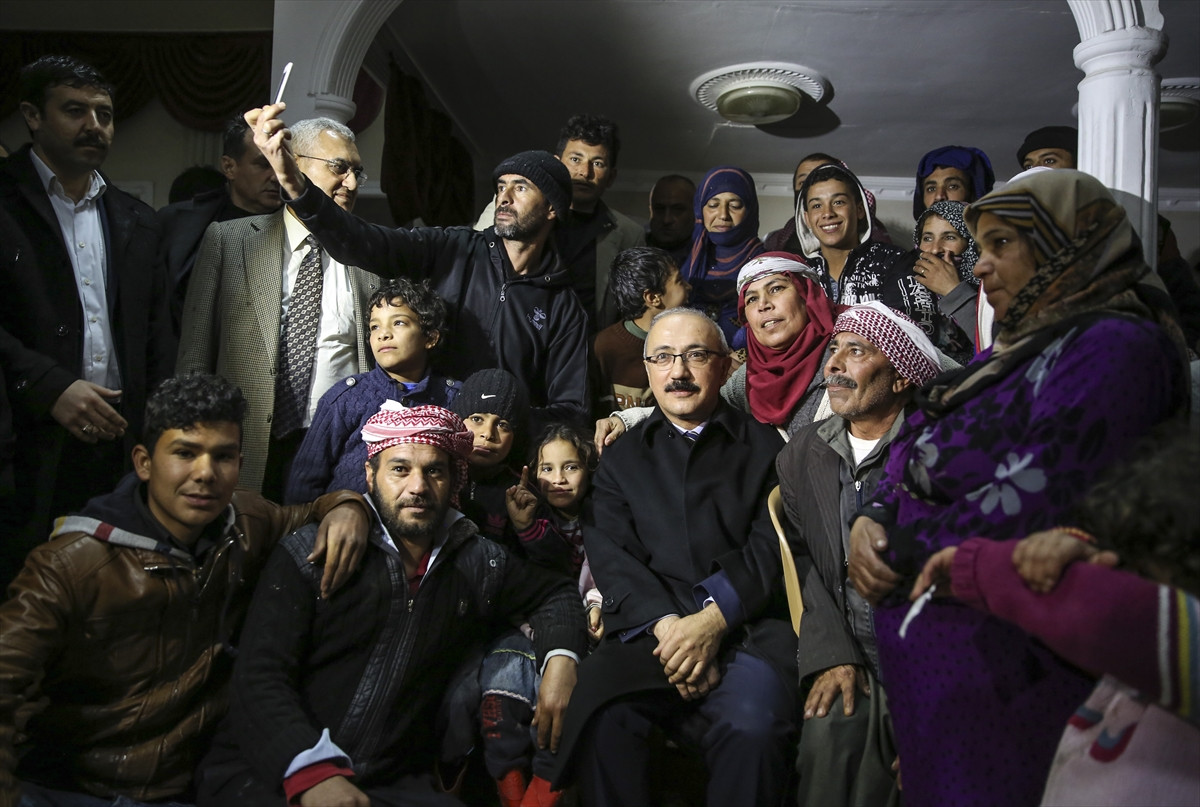 Bakan Elvan, son olarak yoğun yağış nedeniyle bir okula sığınan Suriyeli vatandaşları ziyaret etti.