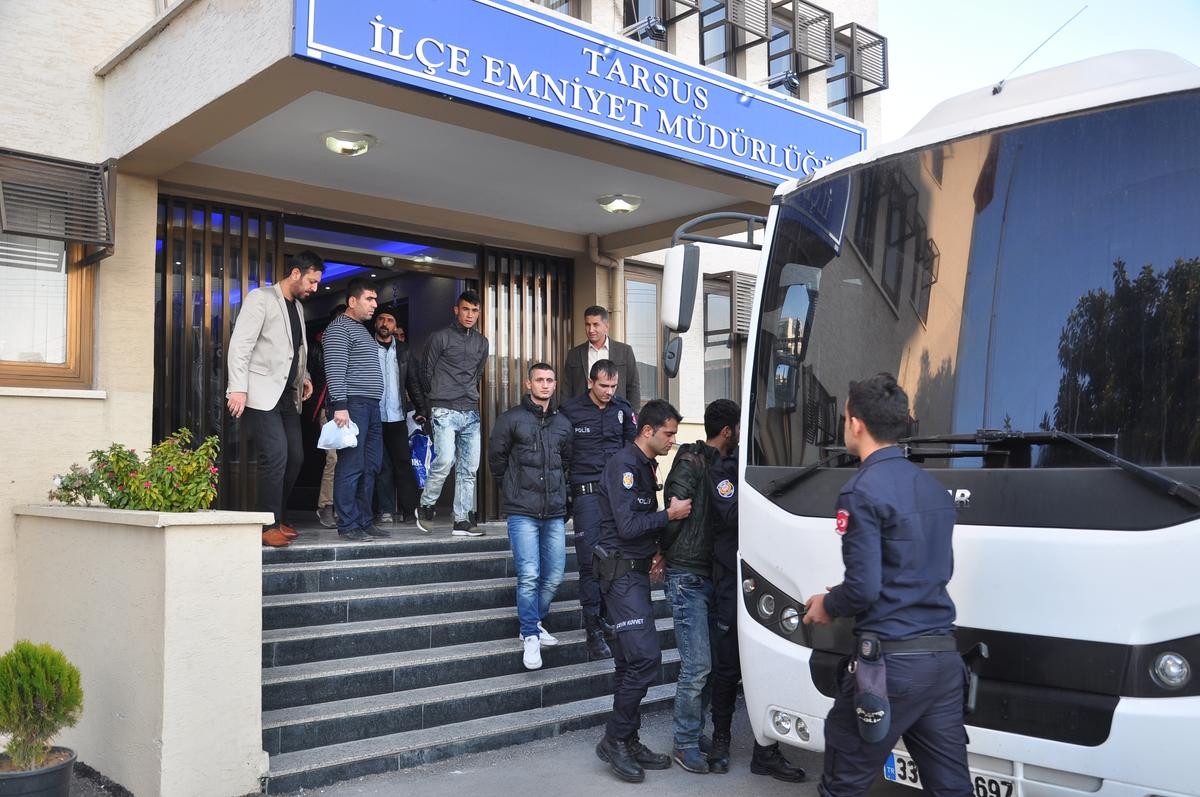 MERSİN (AA) – Mersin'in Tarsus ilçesinde, terör örgütü lehine izinsiz sokak eylemlerine katıldıkları iddiasıyla gözaltına alınan 17 kişi adliyeye sevk edilirken, eylemlerin olduğu mahalledeki bir okulda eğitime bugün ara verildi.