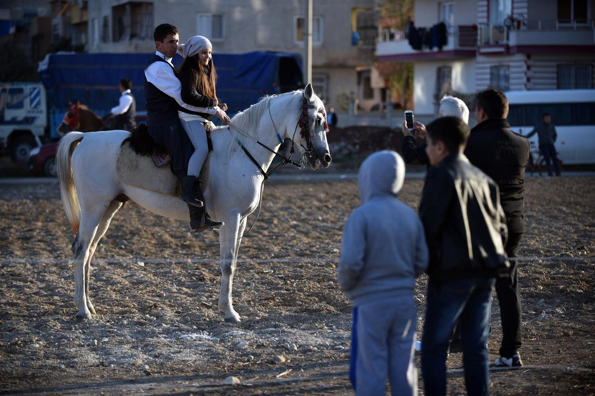 Sporcular, nefesleri kesen "ata sporunun" ardından çocukları atlarına bindirerek, tur attırdı.