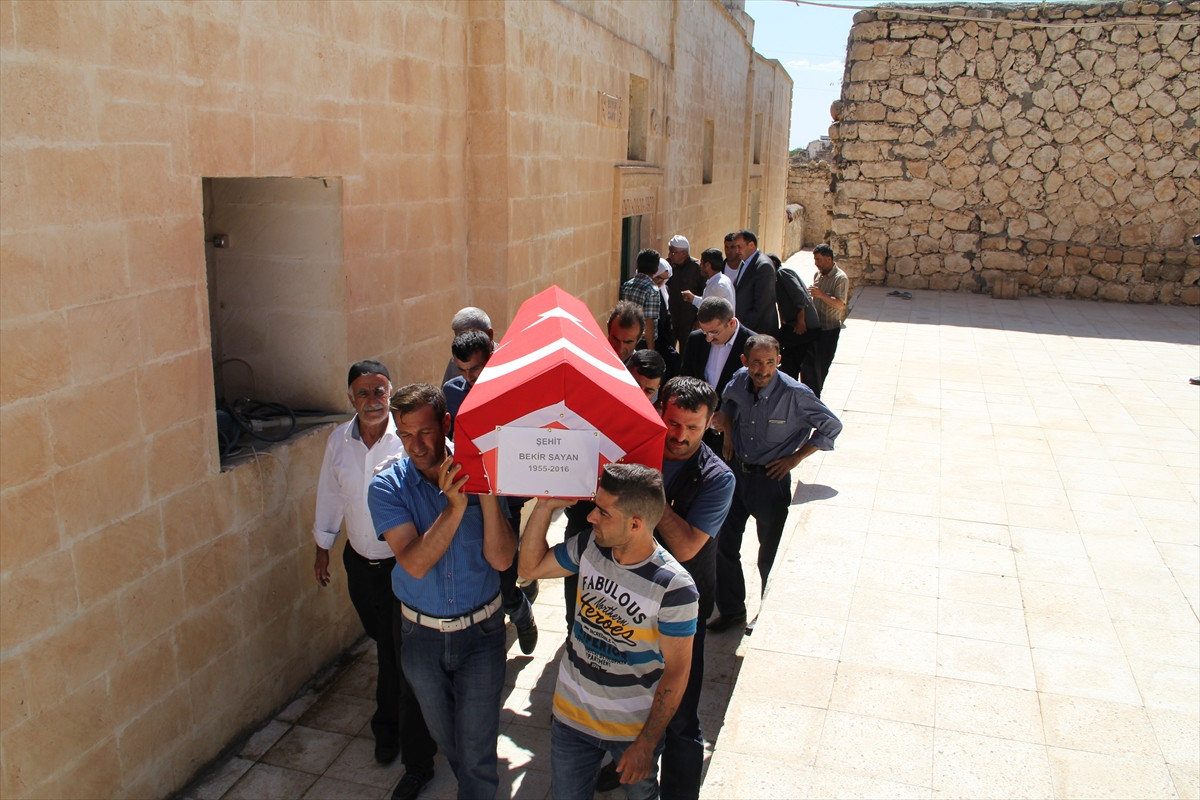 Sayan çiftinin Türk bayrağına sarılı cenazeleri, Midyat Hükümet Konağı önündeki törenin ardından ilçeye bağlı Kutlubey köyüne götürüldü. 5 çocukları bulunan Bekir (61) ile eşi Hayriye Sayan (60) için köyde düzenlenen cenaze törenine, yakınları ve köylülerinin yanı sıra Midyat Kaymakamı Oğuzhan Bingöl, Belediye Başkanı Şehmuz Nasıroğlu ve Jandarma Komutanı Binbaşı Ömer Ölmez katıldı.