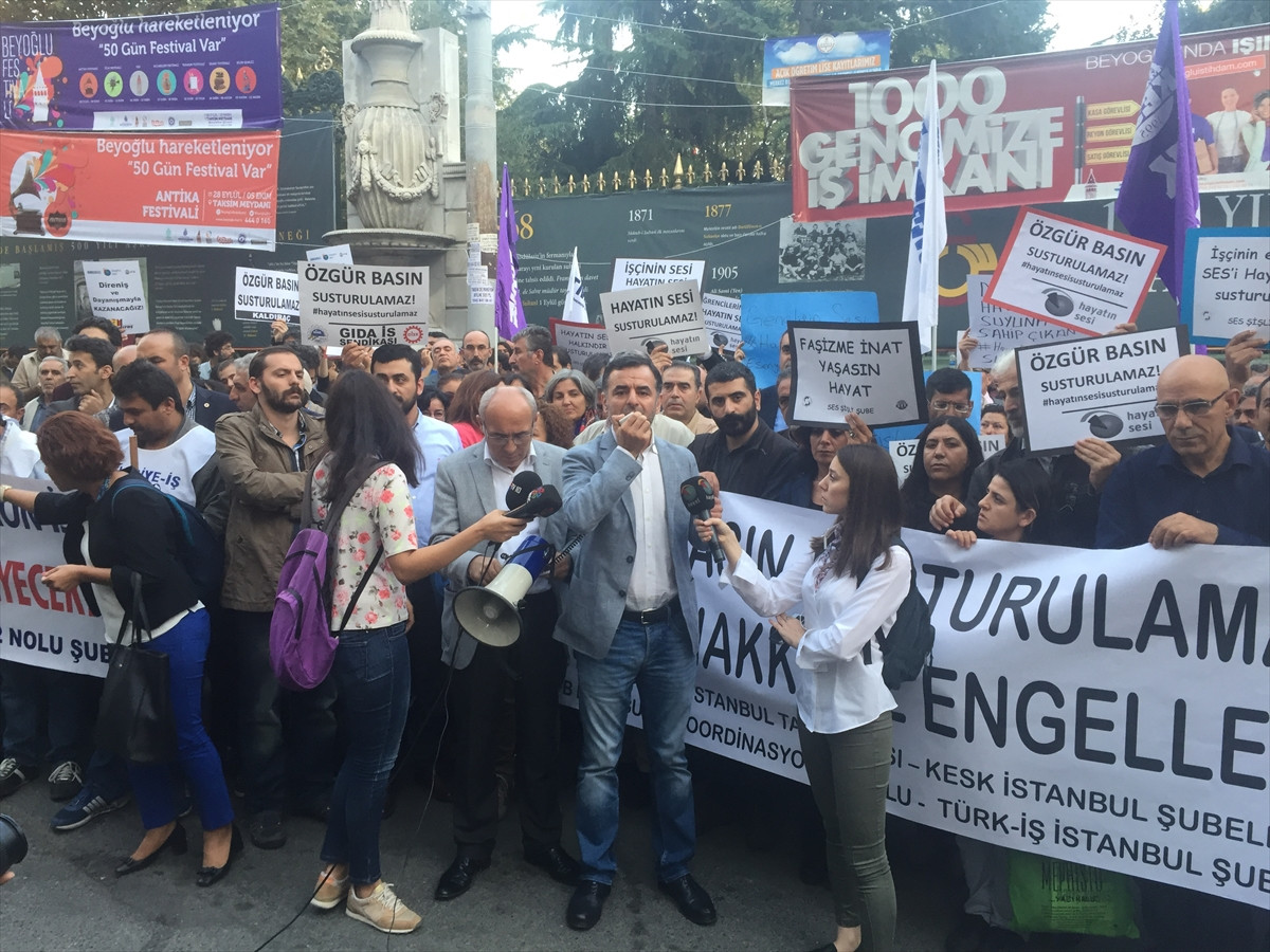 12 televizyon kanalının OHAL kapsamında çıkarılan kararname ile RTÜK tarafından yayınlarının durdurulmasına tepki göstermek amacıyla Galatasaray Meydanı'nda basın açıklaması yapıldı.