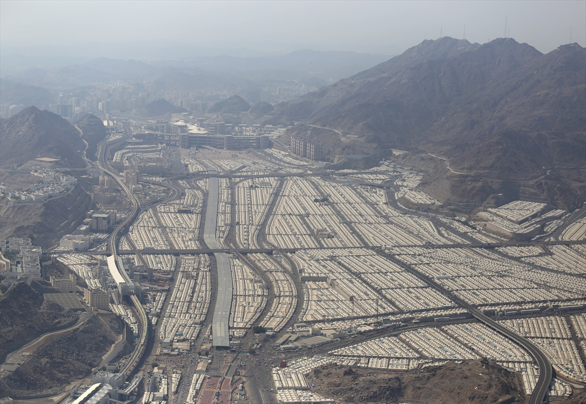 Bayramın ikinci gününde şeytan taşlamak için sabah saatlerinden itibaren yollara düşen hacıların Mina'daki konaklama çadırları ve şeytan taşlama alanı Anadolu Ajansı (AA) ekibi tarafından havadan görüntülendi.