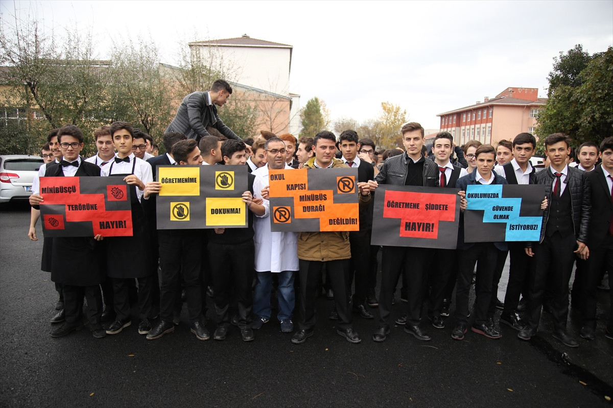 İSTANBUL (AA) - Eğitim-Bir-Sen üyeleri, öğretmeler ve öğrenciler, Cevizlibağ'daki Mehmet İhsan Mermerci Mesleki ve Teknik Anadolu Lisesi müdürü ile bir öğrencinin minibüs şoförleri tarafından darp edilmesini protesto etti.