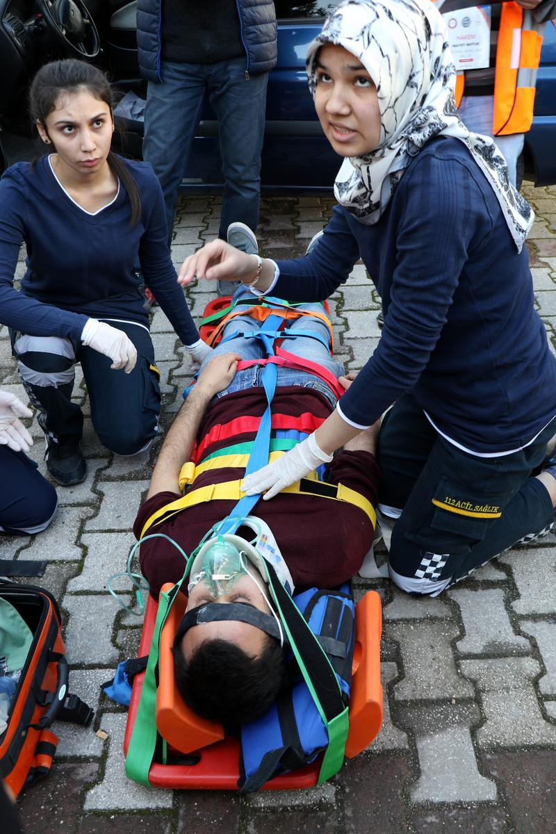 HATAY (AA) - Mustafa Kemal Üniversitesinde (MKÜ) düzenlenen "Medikal Ambulans Rallisi"nde öğrenciler, senaryo gereği yaralı ve hastalara en kısa sürede doğru müdahaleyi yapabilmek için yarıştı.