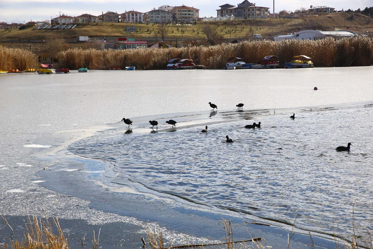 Yurt genelinde kötü hava şartları devam ediyor. Ankara'nın Gölbaşı ilçesindeki Mogan Gölü, hava sıcaklığının düşmesi sonucu kısmen buz tuttu. Mogan Gölü'nde, aşırı soğuklar nedeniyle 3-4 santimetrelik buz tabakası oluştu. Gölbaşı Belediyesi, buz tutan gölde yürünmemesi için uyarı levhaları asarken, çevredeki güvenlik görevlileri de vatandaşlara uyarılarda bulundu. Belediye Başkanı Fatih Duruay, yaptığı açıklamada, Mogan Gölü'nün hava sıcaklığının düşmesi nedeniyle buz tutmaya başladığını ifade etti. Göldeki kuşların da soğuk havadan etkilendiğini belirten Duruay, şunları kaydetti: "Aç kalan, gölümüzün ev sahipleri kuşlarımızı beslemek, bizlere ve Gölbaşılı vatandaşlarımıza düşüyor. Göl kenarındaki fıskiyemizi açık bırakarak kenar kesimlerinin buz tutmamasını ve kuşlar için yaşam yeri sağlıyoruz. Meteorolojiden gelen verilere göre, havalar giderek soğuyacak. Vatandaşlarımızdan göl üzerine çıkmamasını önemle rica ediyoruz."