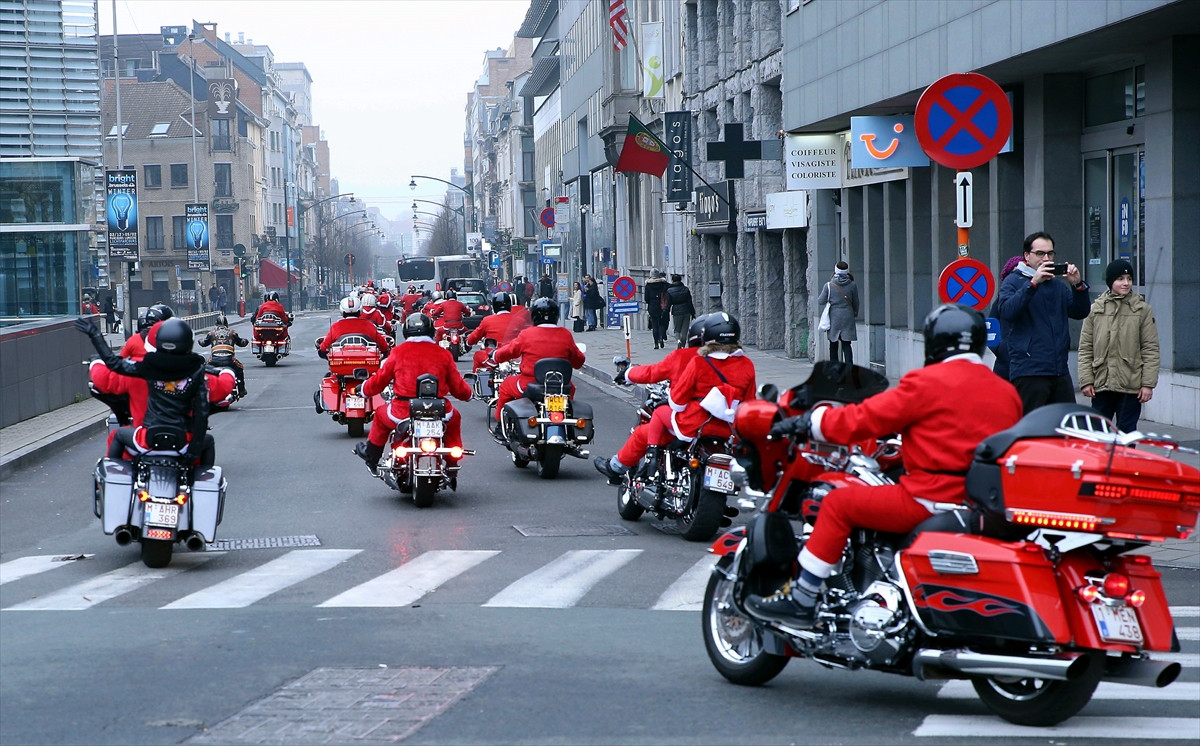 Belçika Harley-Davidson Kulübünce bu yıl dokuzuncusu düzenlenen etkinlik, Noel Baba kostümü giyen motosikletlilerin Sainte Catherine Meydanı'nda toplanmasıyla başladı.