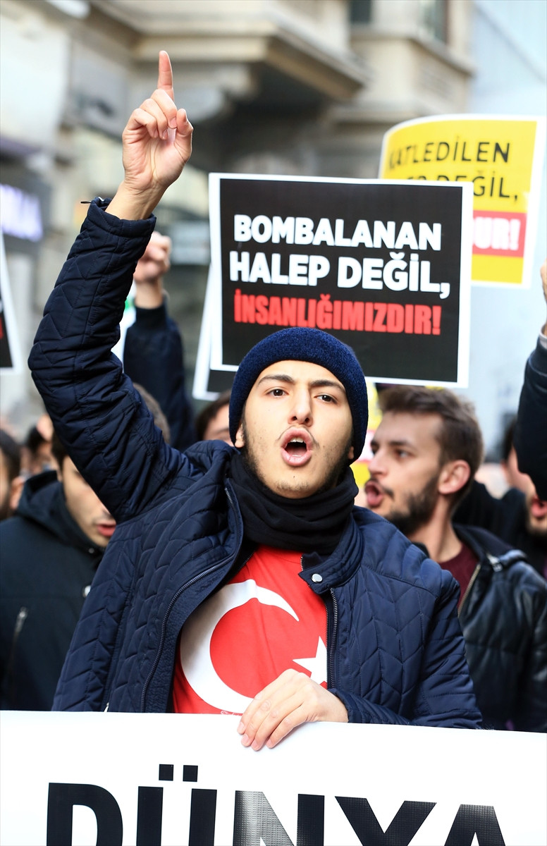 İSTANBUL (AA) - Milli Türk Talebe Birliği (MTTB) üyeleri, Halep'teki saldırıları protesto etti.