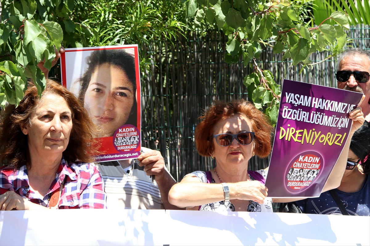 Osman Kaya'nın da katıldığı eylemde "Direneceğiz, kadın cinayetlerini durduracağız" yazılı pankart ile cinayete kurban giden kadınların fotoğraflarının bulunduğu dövizler taşıyan grup, bir süre slogan attı.