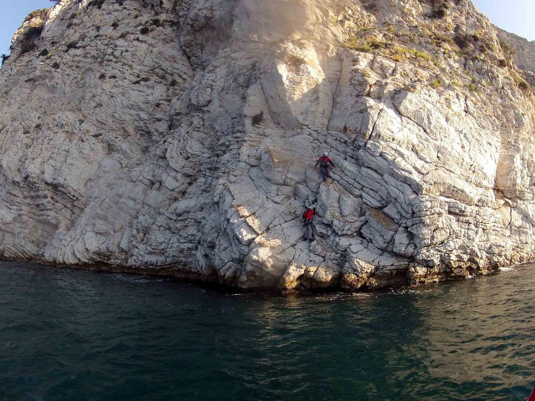 Karadan ulaşım olmadığı için botla bölgeye giden 5 kişilik AKUT ekibi, adadaki kayalıklara halatlar yardımıyla tırmanarak mahsur kalan keçiyi kurtardı.