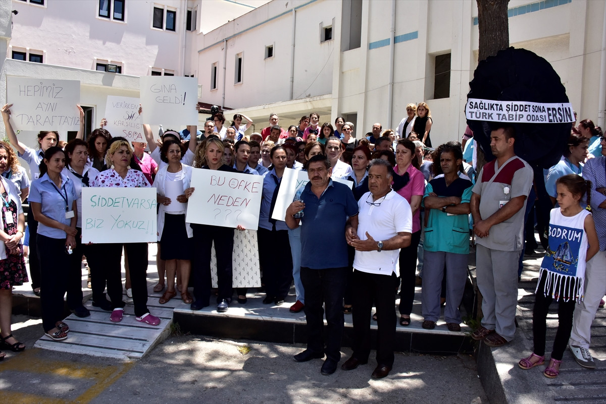 MUĞLA (AA) - Muğla'nın Bodrum ilçesinde bir grup sağlık çalışanı, meslektaşlarının hasta tarafından darbedildiği iddiasıyla eylem yaptı.