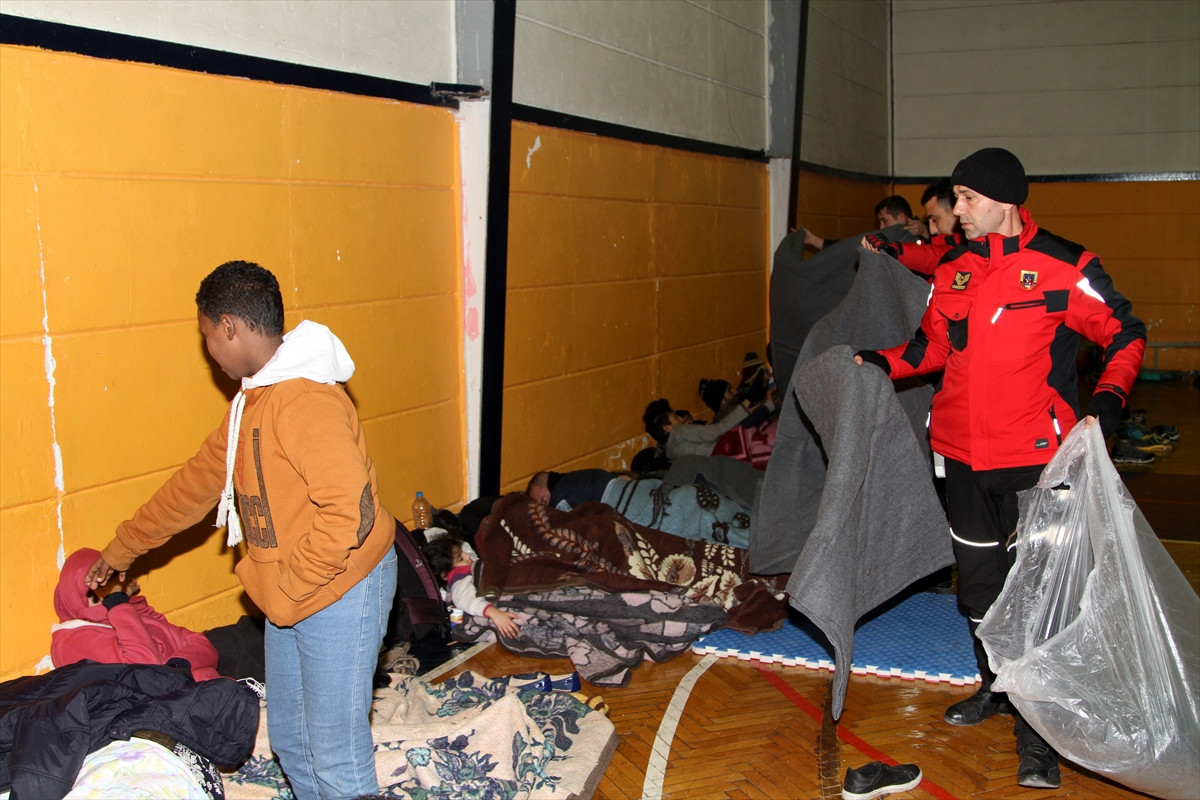 MUĞLA (AA) - Muğla'nın Fethiye ilçesinde yasa dışı yollardan yurt dışına gitmek isterken jandarma ekiplerince yakalanan göçmenlere battaniye ve gıda malzemesi dağıtıldı.