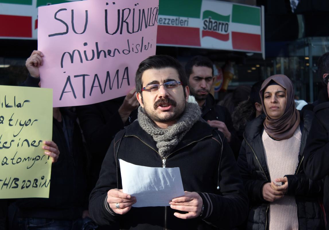 Kızılay Meydanı'nda toplanan ve aralarında ziraat, gıda, su ürünleri, balıkçılık teknolojisi mühendisleri ile teknikerler ve veteriner hekimlerin de bulunduğu yaklaşık 25 kişilik bir grup, Gıda, Tarım ve Hayvancılık Bakanı Faruk Çelik’e, atamalarının yapılması çağrısında bulundu.