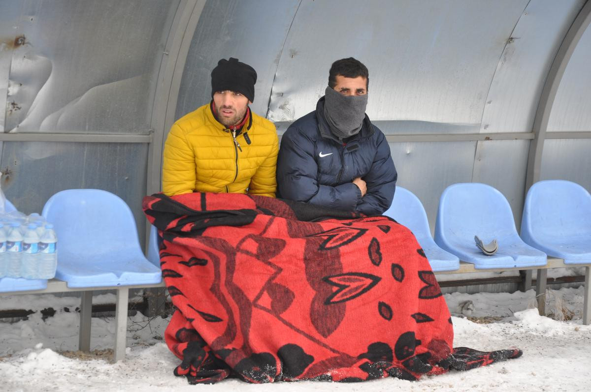 Doğu Anadolu Bölgesinde yaşanan dondurucu soğuklar, futbol müsabakalarında futbolcu ve taraftarlara zor anlar yaşatıyor.