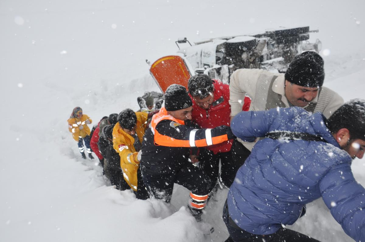 Edinilen bilgiye göre, kentte etkili olan kar yağışının ardından yol açma çalışmalarını yürüten karayollarına ait araç, Muş-Bitlis Karayolu'nun Bulanık ilçesi yol ayrımında şarampole devrildi.
