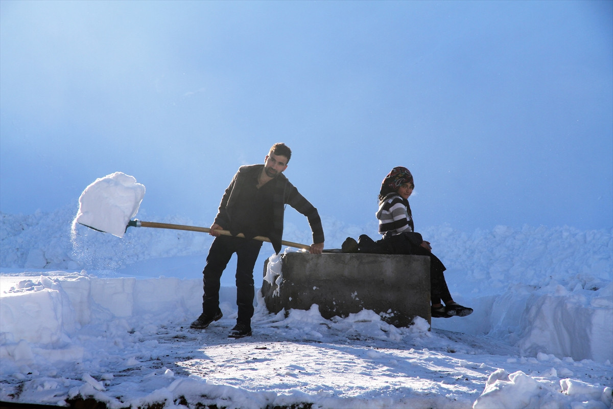 MUŞ (AA) - Muş'un merkeze bağlı bazı dağ köylerinde tek katlı evler kar altında kaldı.