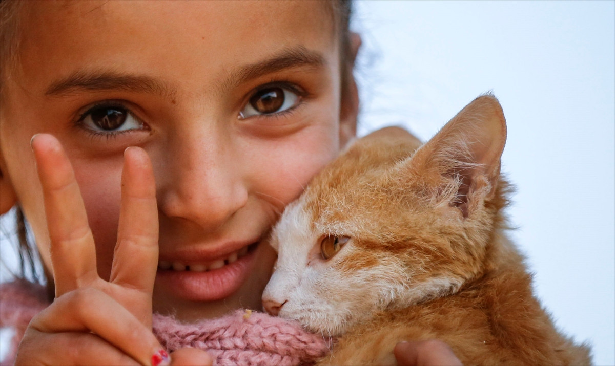 Musul'un güneydoğusunda ve 40 kilometre mesafede yer alan Hazır Çadır Kampı'na sevk edilmeyi bekleyen 6-7 yaşlarındaki Melek, elindeki minik kedisiyle oradaki herkesin dikkatini çekti.