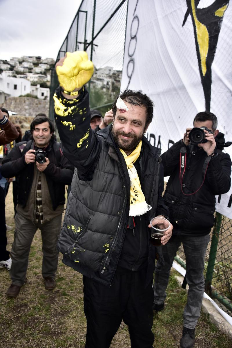 MUĞLA (AA) - Ünlü oyuncu Nejat İşler, başkanlığını yaptığı Gümüşlük Gençlikspor'un şampiyonluk maçının ardından sahadaki sevince ortak olmak isterken küçük bir kaza atlattı.