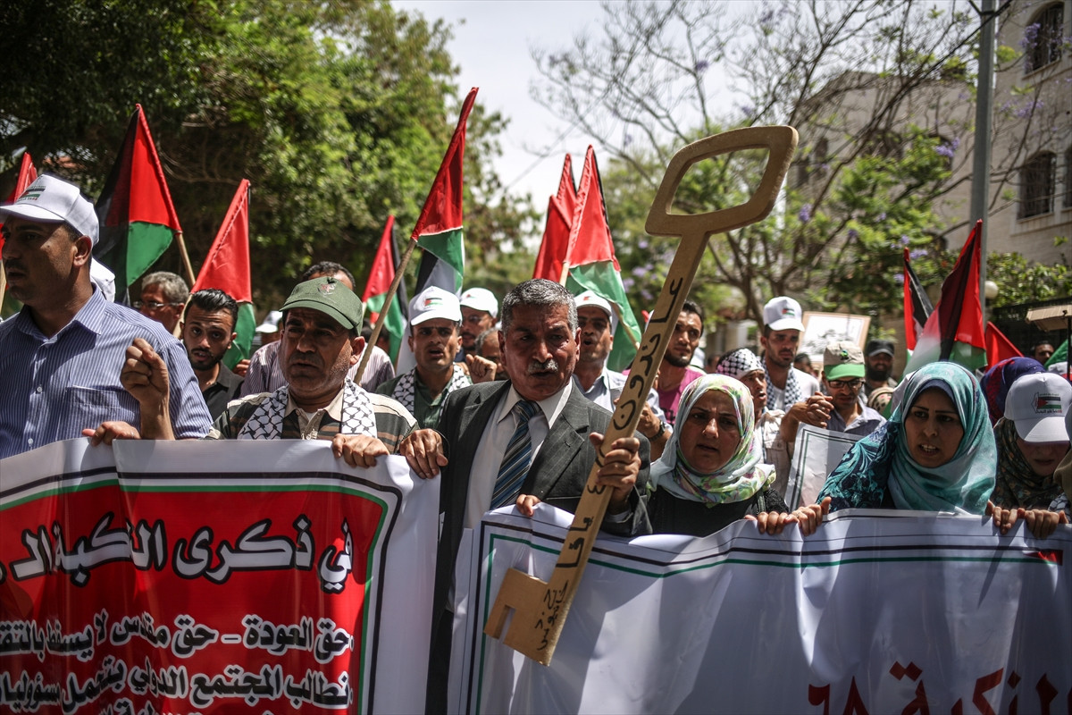GAZZE (AA) - Gazze'de çok sayıda Filistinli, Nekbe'nin (Büyük felaket) 68'inci yılı münasebetiyle yürüyüş düzenledi.