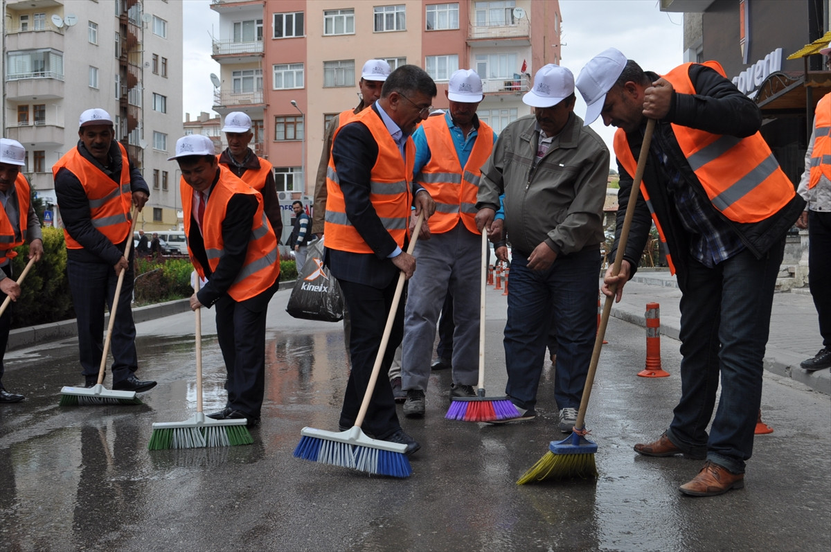 NİĞDE (AA) - Niğde Belediye Başkanı Faruk Akdoğan, "Mahalleni Temiz Tut" adlı proje kapsamında belediye temizlik görevlileriyle sokak ve caddeleri yıkadı.