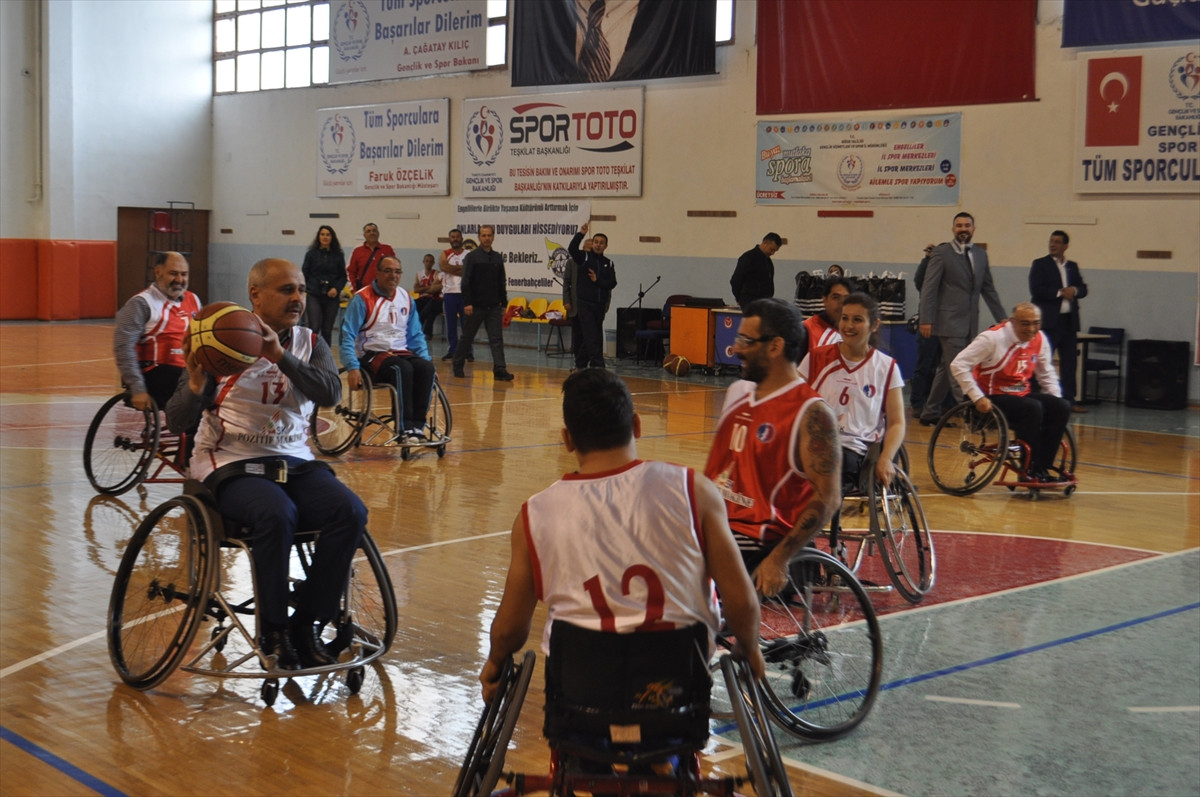 Niğde Valisi Ertan Peynircioğlu, AK Parti Niğde Milletvekili Alparslan Kavaklıoğlu ve kurum müdürleri, 5 Şubat Spor Salonu'nda düzenlenen etkinlikte, tekerlekli sandalyelere oturarak, engellilerle basketbol oynadı.