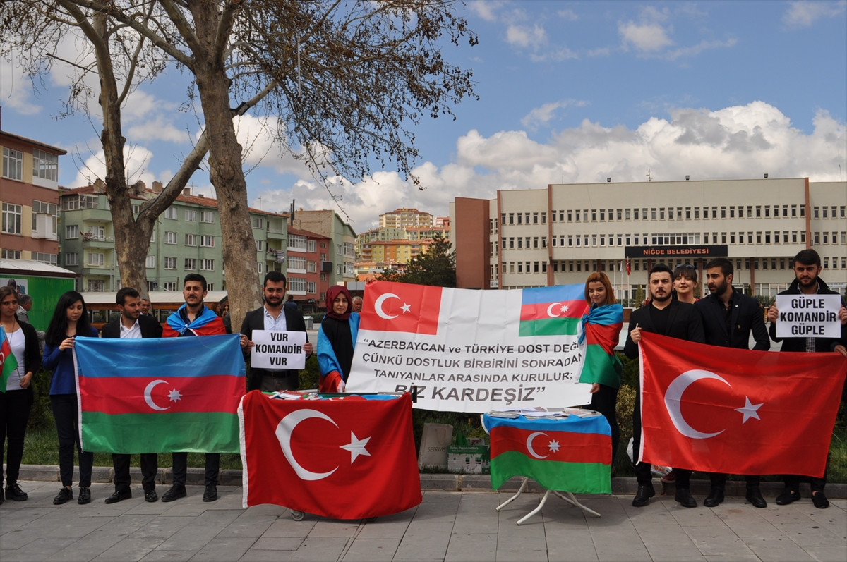 NÜ Azerbaycan Öğrenci Temsilcisi Heydar Maharromov, kent meydanında yaptığı basın açıklamasında, ülkelerinde yaşanan savaş nedeniyle şehit olan askerleri anmak için toplandıklarını söyledi.