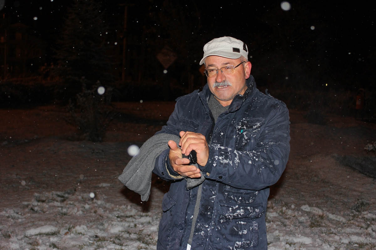 Kent Merkezinde akşam saatlerinde başlayan kar yağışı ile birlikte, Dere Mahallesi'ndeki bir parka giden Demirtaş, kar yağışına aldırmadan çıplak halde soğuk havaya meydan okudu.