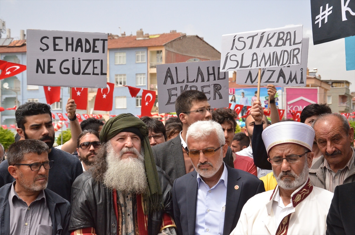 Aktekke Kent Meydanı'nda Cuma namazı sonrası bir araya gelen grup, ellerinde pankartlarla slogan atarak idamı protesto etti.