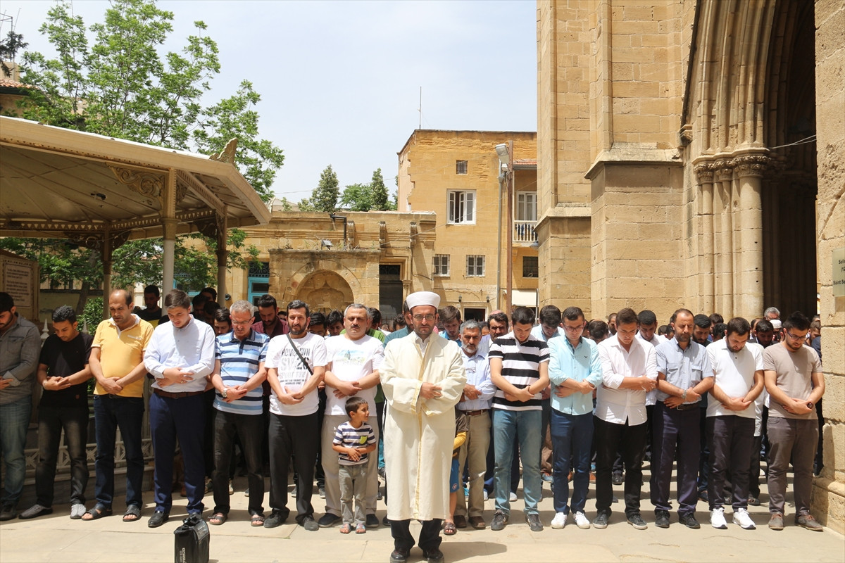 Lefkoşa'da Evrensel Sevgi ve Kardeşlik Derneği (ESKAD) Kıbrıs üyeleri, cuma namazının ardından Selimiye Camisi önünde toplandı.
