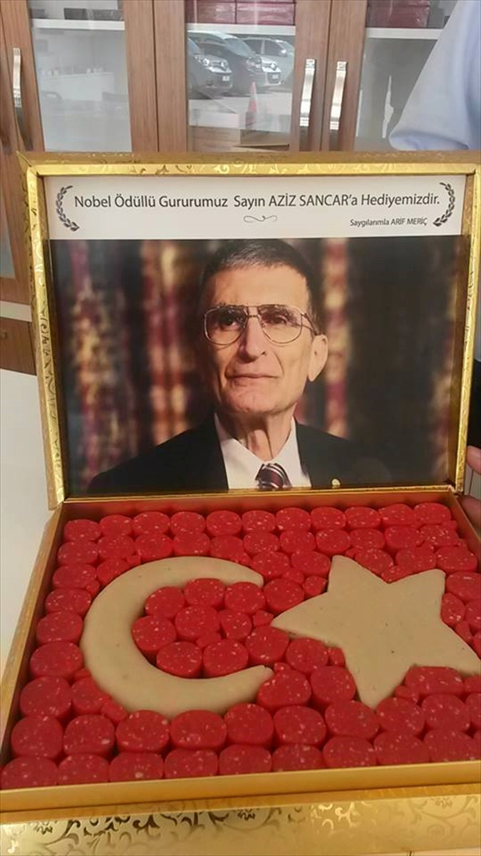 EDİRNE (AA) – Edirneli şekerlemeci Arif Meriç, Nobel Kimya ödülünü kazanan Türk bilim insanı Prof. Dr. Aziz Sancar'a hediye etmek için badem ezmesinden Türk bayrağı hazırladı.