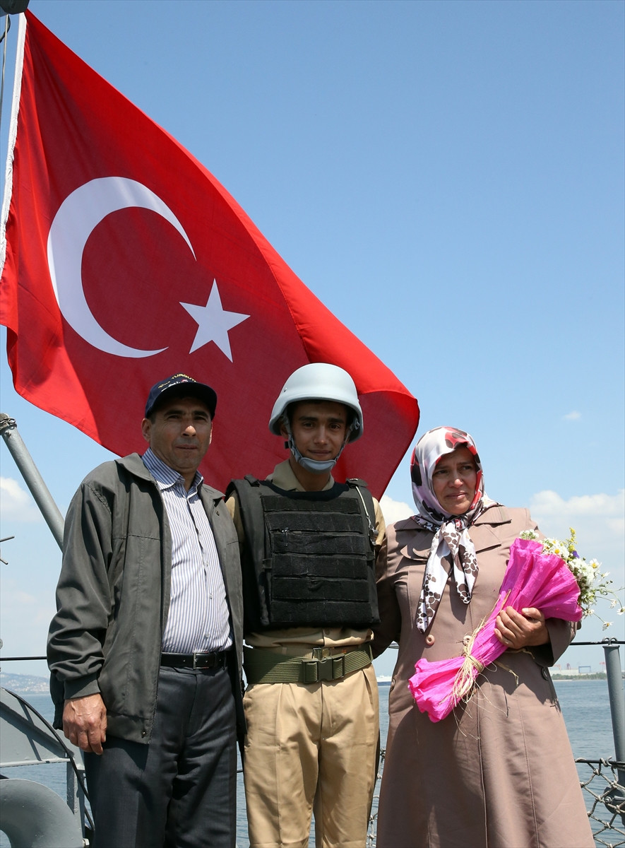 TCG Turgutreis Fırkateyni'nde nöbet tutarken annesi Aysel Serten'i bir anda karşısında bulan porsun er Yunus Serten de büyük sevinç yaşadı.