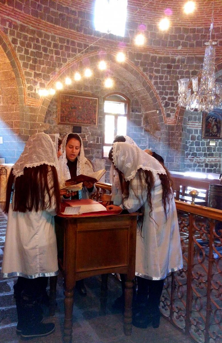 Sur ilçesinde Lalebey Mahallesindeki tarihi kilisede papaz Yusuf Akbulut'un yönettiği ayinde kız ve erkek ilahi grupları iki dilde dualar okudu.
