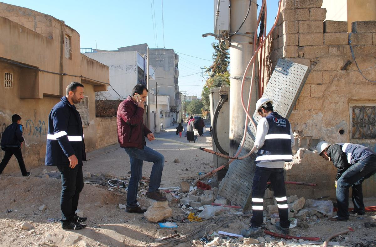 "Halen birçok yerde yeraltına veya barikatlara tuzaklanmış patlayıcıların bulunduğu ilçede, tüm olumsuzluklara karşın DEDAŞ ekipleri ilk etapta 25 trafonun kurşun isabet etmesi veya patlamalar nedeniyle hasar görerek kullanılamaz duruma geldiğini belirledi. Bunun üzerine, hasar gören bu trafolar sökülerek, yerine yeni trafolar monte edilmeye başlandı. Diğer ekipler de çatışmalar sırasında kopan elektrik tellerini onardı."