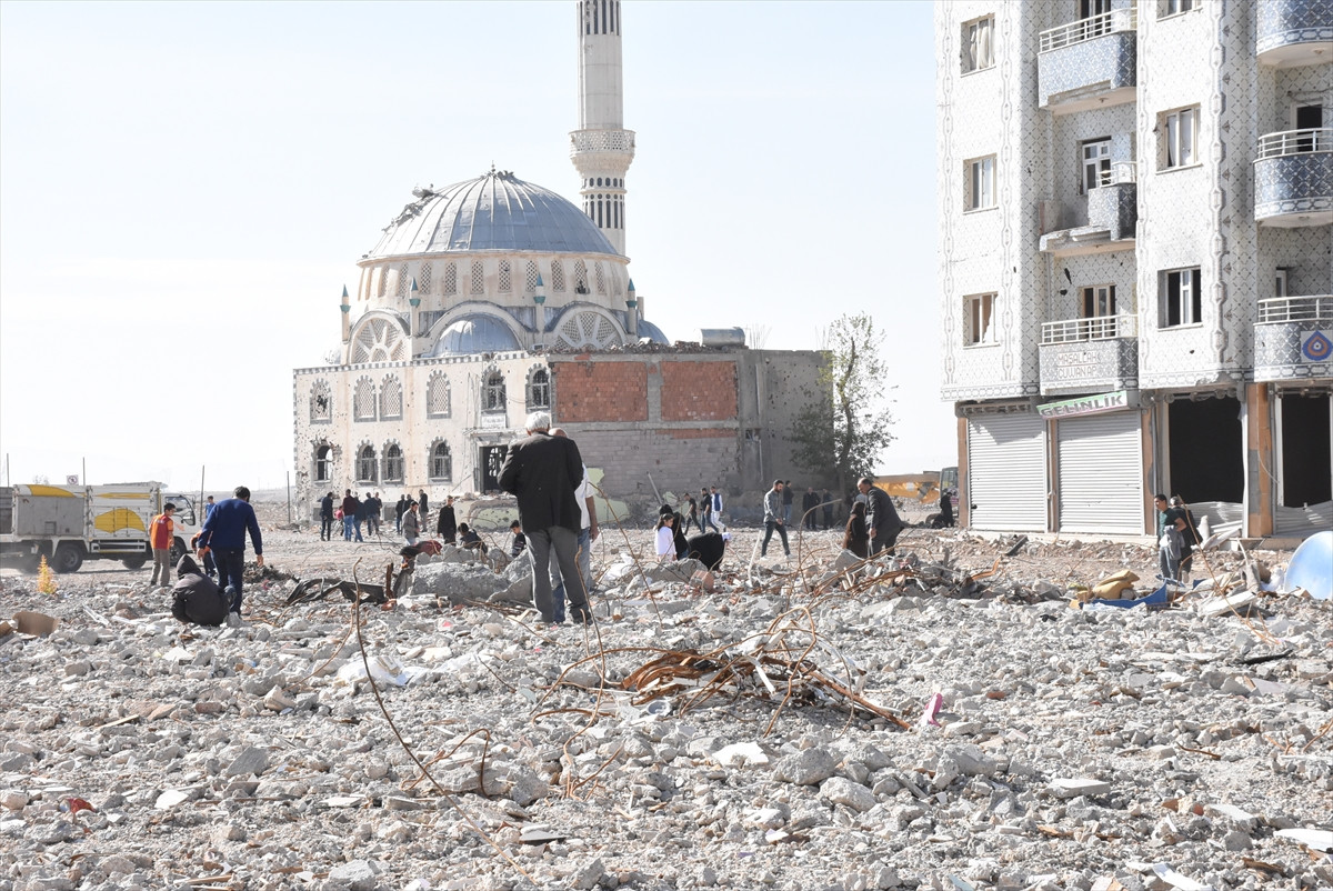 Teröristlerin tahrip ettiği evlerin yıkımından sonra Kışla ve Zeynelabidin mahallelerine çekilen güvenlik telinin bir bölümü kaldırıldı.