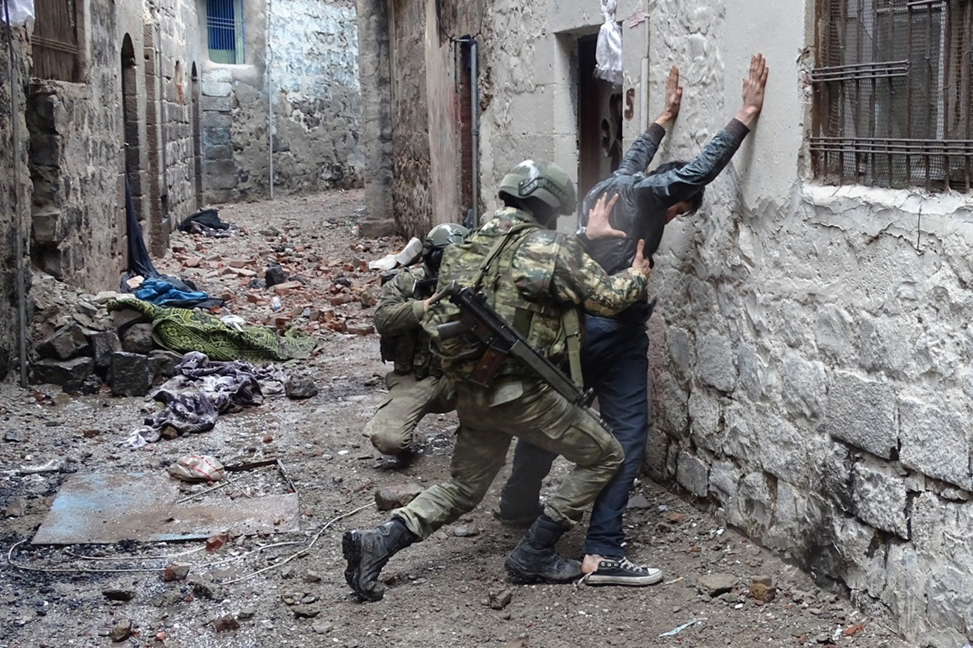 Nusaybin'de PKK'lı teröristlerin yakalanması, patlayıcılarla tuzaklanan çukurların kapatılması, barikatların kaldırılması, halkın can ve mal güvenliğinin sağlanması amacıyla ilan edilen sokağa çıkma yasağının ardından Türk Silahlı Kuvvetleri ve emniyet unsurlarınca 14 Mart'ta başlatılan operasyon sürüyor. Güvenlik güçleri, ilçedeki farklı noktalarda yaptıkları anonslarla teröristlere teslim olmaları yönünde çağrıda bulunuyor. Zırhlı araçlardan, "Bölücü terör örgütünün zulmüne son vermek, can güvenliğini sağlamak ve kamu düzenini tesis için güvenlik güçleri, her türlü gayreti göstermektedir. Bu maksatla operasyonlarımız başlatılmıştır. Terör örgütü mensuplarının teslim olmamaları halinde tamamen etkisiz hale getirilinceye kadar operasyonlarımız kararlılıkla devam ettirilecektir." şeklinde anonslar yapılıyor. Güvenlik güçlerinin çağrıları üzerine dün biri kadın iki terörist, silahlarını bırakarak teslim oldu. Güvenlik kaynakları, teröristlerin teslim olmasının örgütteki çözülmeyi ortaya koyduğunu belirtiyor.