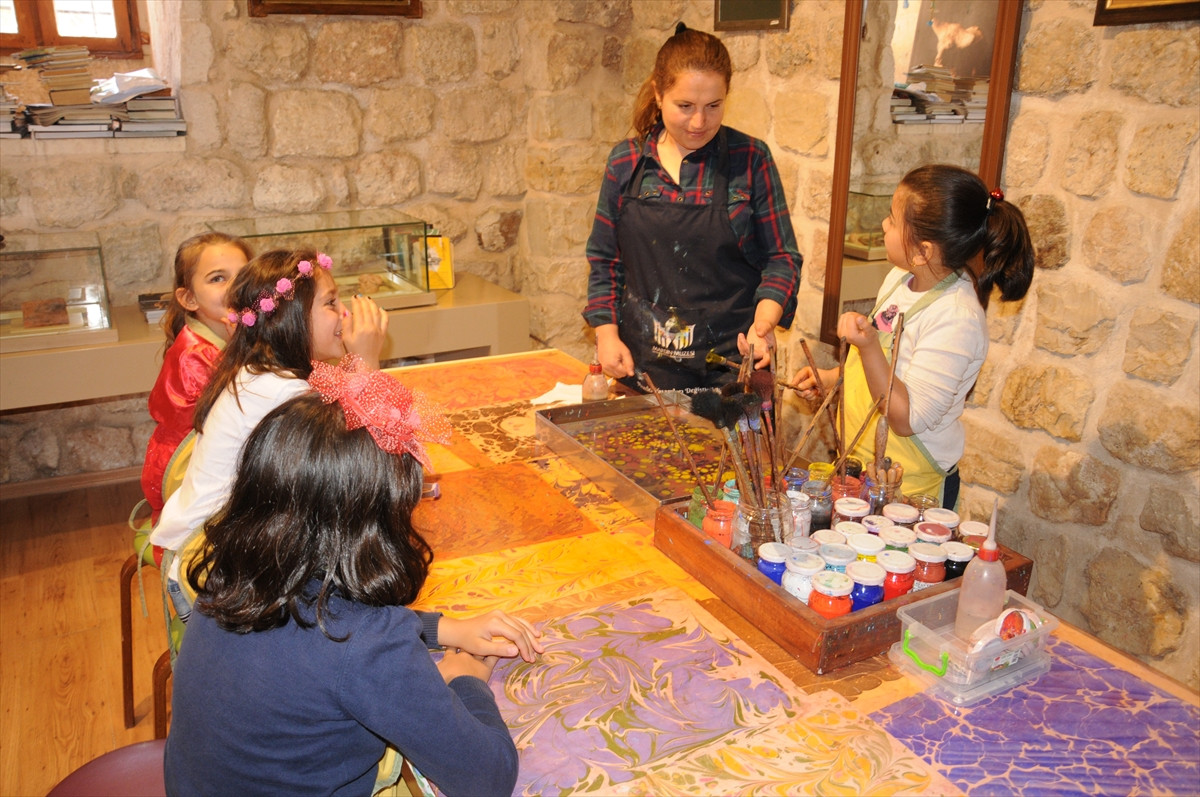 Mardin'in Nusaybin ilçesi Oğuzhan İlkokulunda okuyan terör mağduru öğrenciler için hazırlanan etkinlik kapsamında, öğrenciler Mardin'in tarihi ve turistik yerleri gezdi ve doyasıya eğlenme fırsatı buldu. Mardin Müzesini ziyaret eden öğrenciler, unutulmaya yüz tutmuş cam altı boyama, kök boya baskı, ebru gibi el sanatlarını yapmayı öğrendi. Sanat Tarihçisi ve Müze Görevlisi Seher İvrendi, 2010 yılından beri devam eden müze etkinliklerini okullarla iş birliği içerisinde yürüttüklerini söyledi. Nusaybin Kaymakamlığı ile ortak bir proje hazırladıklarını kaydeden İvrendi, "Kaymakamlığın belirlediği 35 kişilik öğrenci grubu müzeyi gezdi. Buraya gelen minik çocuklar bize emanet. Eğitim salonlarında daha çok kaybolmaya yüz tutmuş el sanatlarını yaptırıyoruz. Öğrencilerimizle atölyelerde cam altı boyama, maden para baskısı, kök boya, ebru ve resim çalışması yaptık." diye konuştu. İvrendi, çocukların müzede çok keyifli vakit geçirdiğini ve rahat bir nefes alma fırsatı yakaladığını ifade etti. Öğretmen Davut Sincar da "Terör saldırıları nedeniyle çocukların psikolojileri bozulmuştu. Bu etkinlik çocuklara moral oldu. Bu programa vesile olanlara teşekkür ediyoruz." dedi. Öğrencilerden 10 yaşındaki Rafiye Şimşek, müzeyi çok merak ettiğini, etkinlik sayesinde müzeyi gezme ve el sanatlarını öğrenme fırsatı yakaladığını dile getirdi.