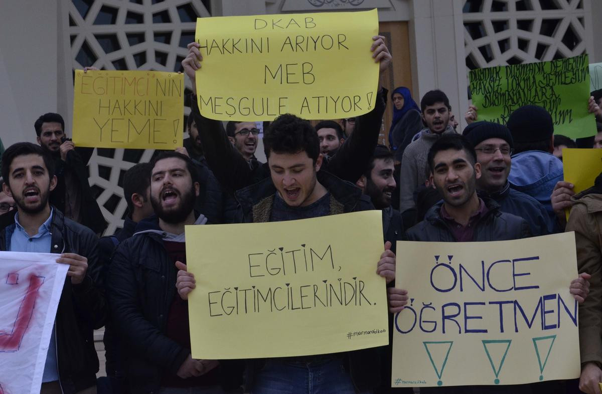 İSTANBUL (AA) - Marmara Üniversitesi İlköğretim Din Kültürü ve Ahlak Bilgisi Öğretmenliği öğrencileri, İlahiyat Fakültesi mezunlarının formasyon eğitimiyle ilköğretimde bu alanda ders vermelerinin önünü açan karara karşı çıktı.