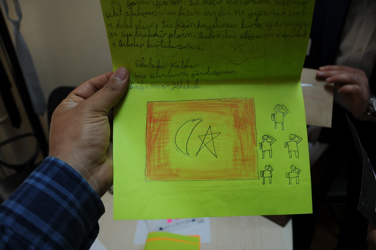 Çocukların duygularını yazıya döktüklerini belirten Kökrek, "Mektuplar düzenlenirken bir tanesinin içinden toprak döküldü, birisi çiçek yapıştırmış. Bunları görünce duygulandık. Yeni okuma öğrenmiş çocukların çizdiği resimler var. Tamamen özgün doğal olduğu gibi güvenlik güçlerine teslim ettik." diye konuştu.