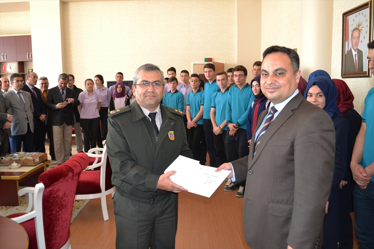 Öğrencilerin yazdığı 65 mektup ve yiyeceklerin bulunduğu paketler, güvenlik güçlerine ulaştırılması için Simav Kaymakamı Türker Çağatay Halim'in makamında İlçe Jandarma Komutanı Binbaşı Sayit Bayramoğlu'na teslim edildi.