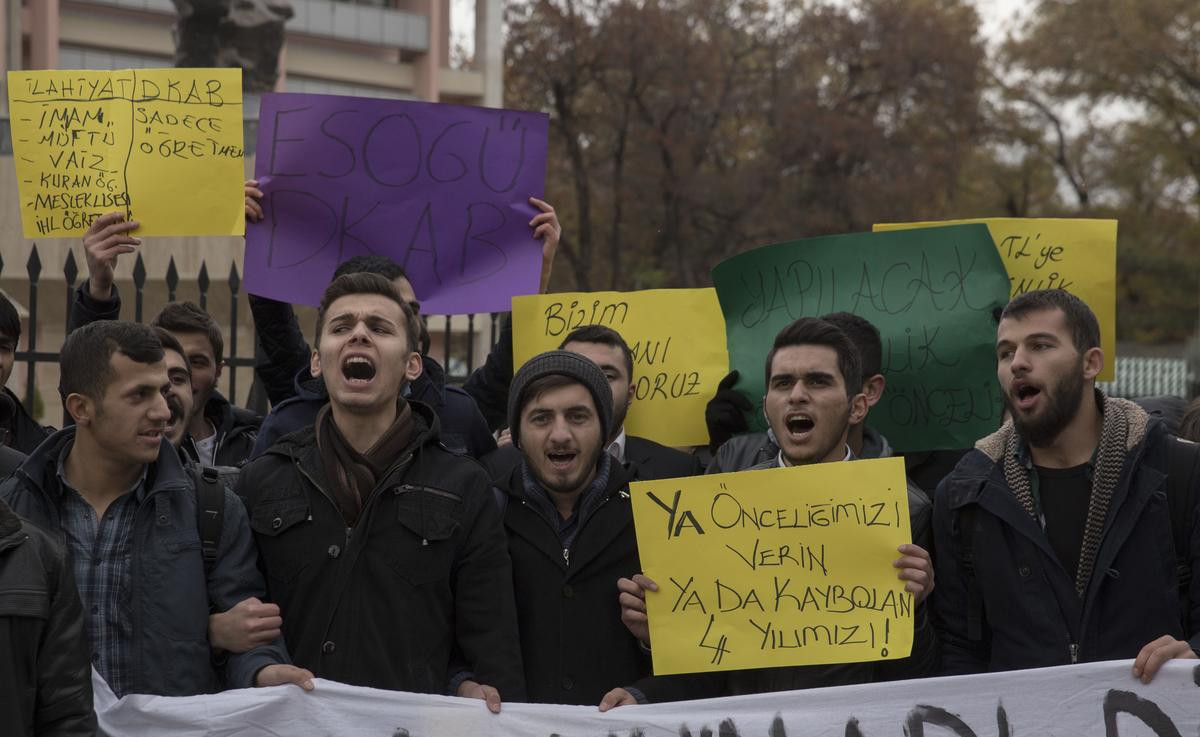 ANKARA (AA) - Din Kültürü ve Ahlak Bilgisi Öğretmenliği bölümü öğrencisi grup, Milli Eğitim Bakanlığının formasyon ve atamalardaki tercih uygulamasını protesto etti.