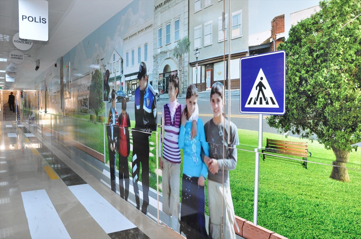 Her türlü detayın düşünüldüğü, trafik şeritleri, işaret ve işaretçileri, lambaları ve levhalarıyla gerçek bir caddeyi anımsatan koridorla, öğrenciler trafik kurallarını uygulamalı öğreniyor.