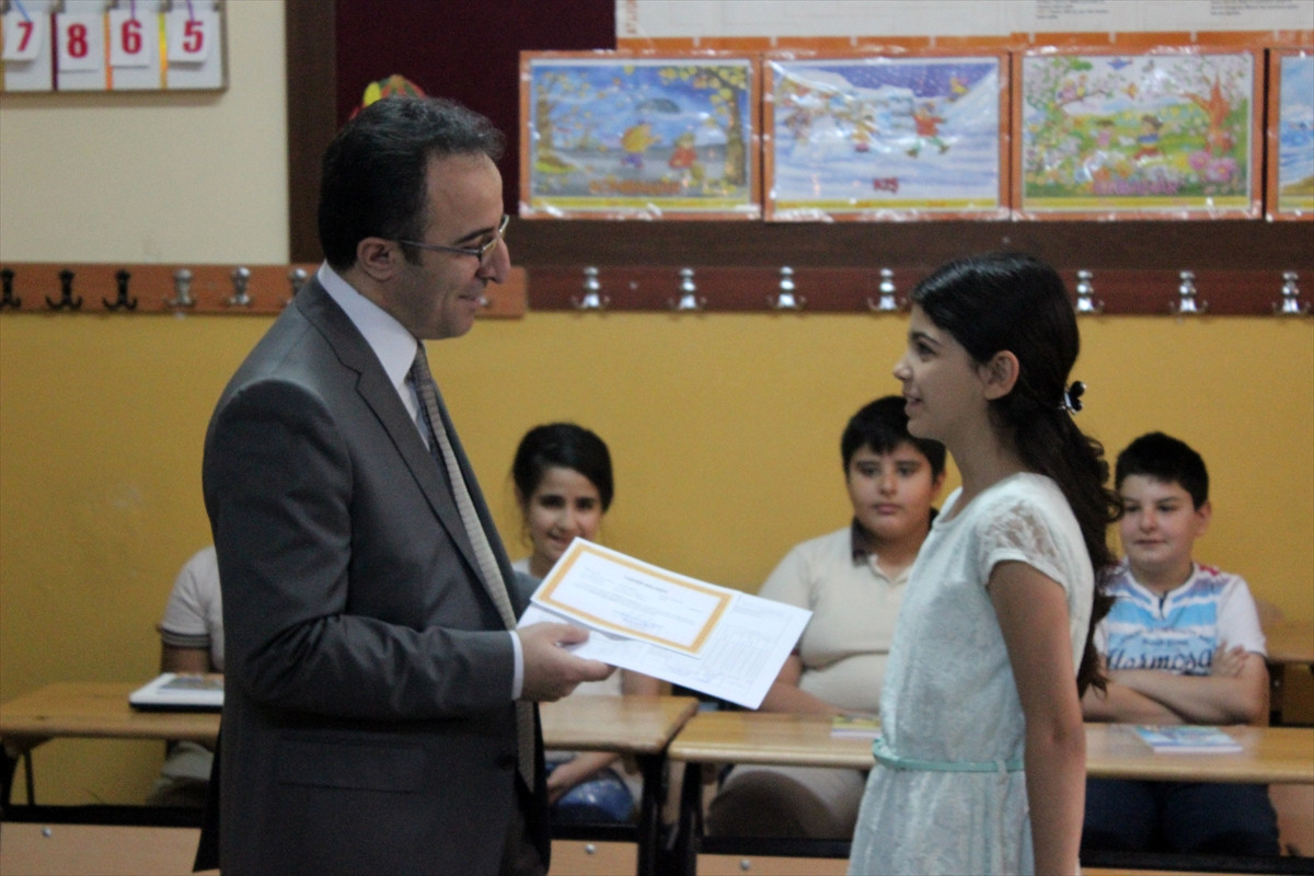 Profilo İlkokulunda düzenlenen karne dağıtım törenine katılan Şanlıurfa Vali Yardımcısı Ahmet Yıldız ile İl Milli Eğitim Müdürü Metin İlci, bazı sınıfları gezerek öğrencilere karnelerini dağıttı.