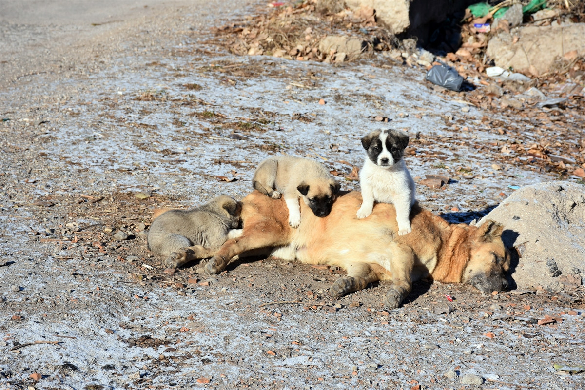 AMASYA (AA) - Amasya'da, telef olan annelerinin yanından bir an olsun ayrılmayan 3 köpek yavrusu, görenleri duygulandırdı.