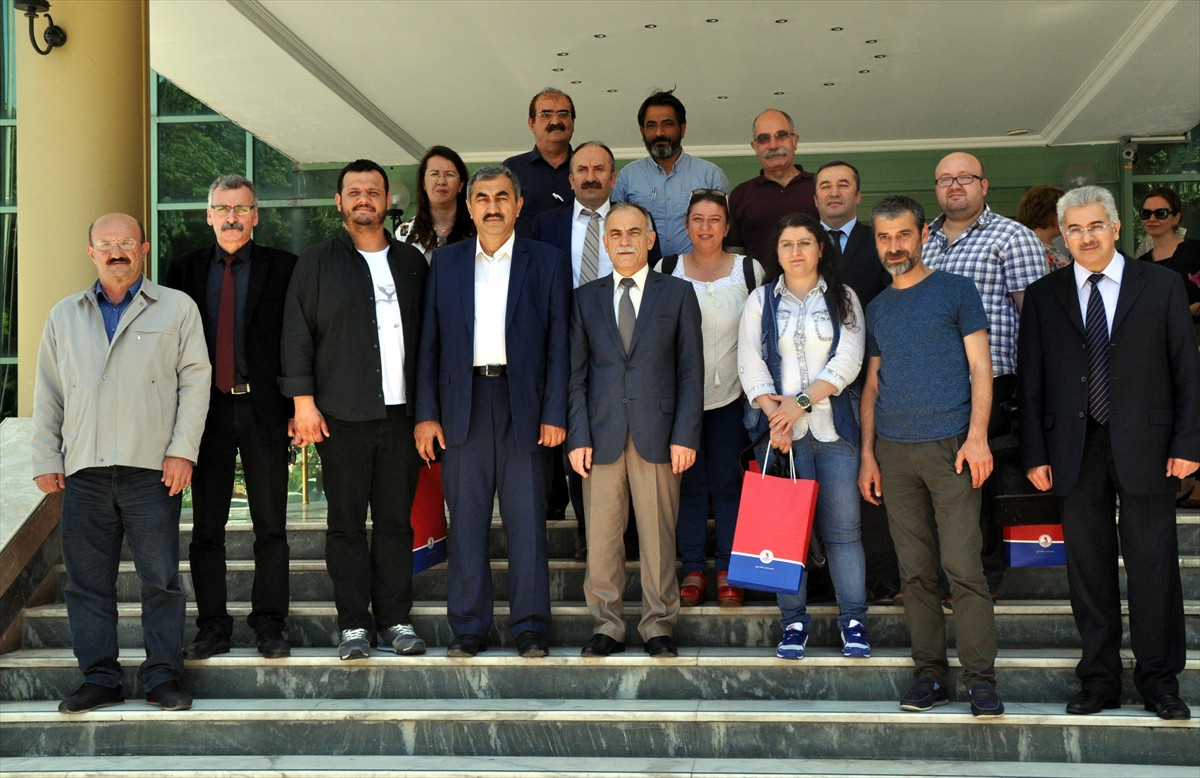 Toplantının ardından gazetecilerle sohbet eden Akan, görevinin sona ermesi sebebiyle hatıra fotoğrafı çektirdi.