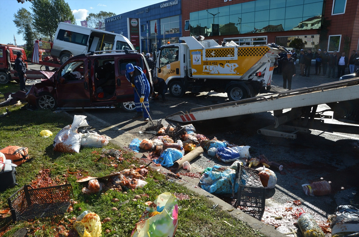Öte yandan, kamyonet içerisinde bulunan turşu ve kışlık yiyecekler ile eşyalar yola dağıldı. Altınordu Belediyesi ekipleri, yolda bulunan yiyecek ve eşyaları temizledi.