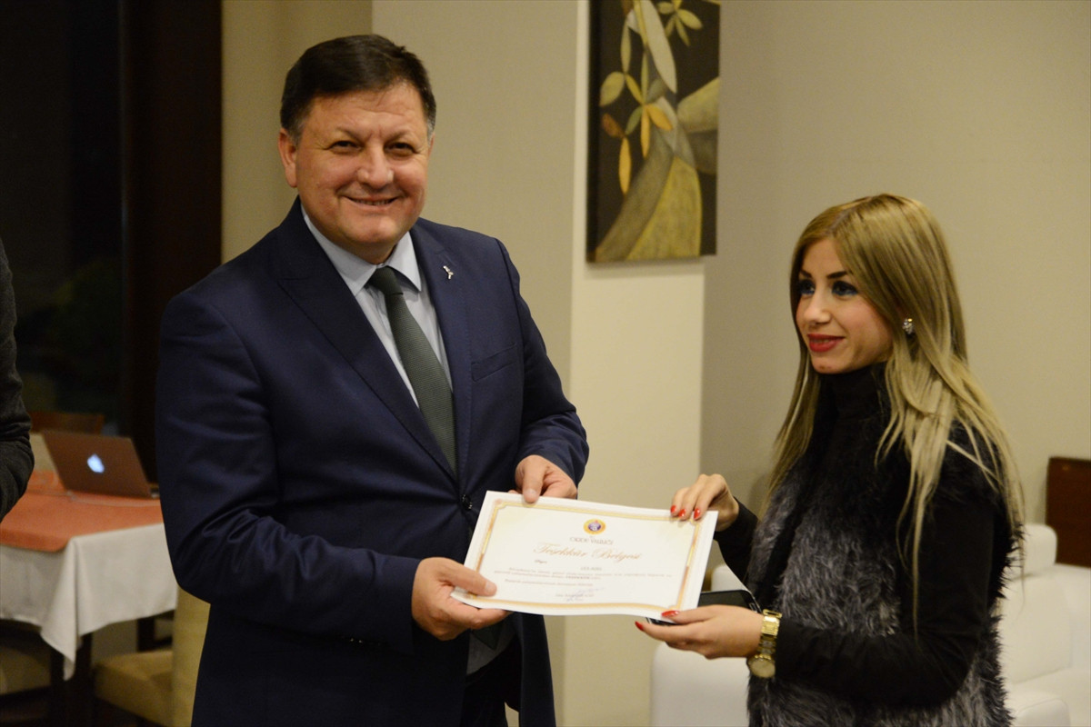 Konuşmanın ardından yabancı katılımcılara teşekkür belgesi takdim edildi.