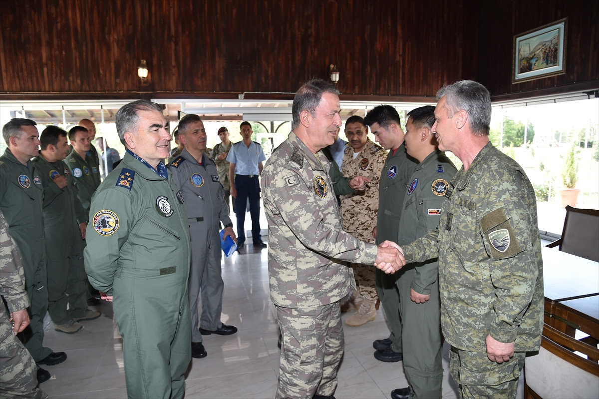 Anadolu Kartalı Tatbikatı'nda yürütülen faaliyetlerle ilgili bilgi alan Akar, tatbikata katılan Türk Hava Kuvvetleri personeli ve yabancı katılımcılarla görüştü.